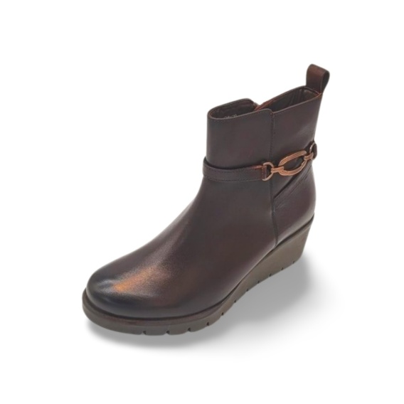 Brązowe botki damskie wykonane z wysokiej jakości skóry naturalnej, posiadają koturnę o wysokości około 5 cm, która subtelnie podnosi sylwetkę, jednocześnie zapewniając stabilność i wygodę. Model wyposażono w boczny suwak, który ułatwia szybkie zakładanie i zdejmowanie obuwia, a tęgość H sprawia, że botki są idealne dla osób o szerokiej stopie, zapewniając komfort nawet przy szerszych stopach. Miękka wyściółka i wkładka dbają o wygodę przez cały dzień, a lekka, antypoślizgowa podeszwa gwarantuje stabilność i bezpieczeństwo każdego kroku.