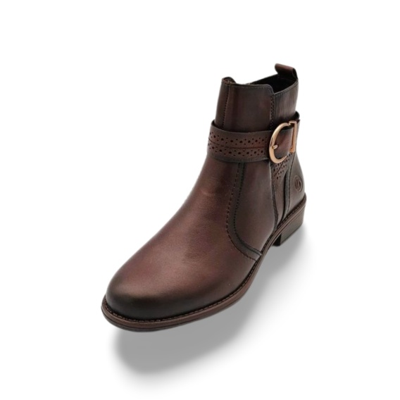 Eleganckie i komfortowe botki damskie w klasycznym brązowym kolorze wykonane z wysokiej jakości skóry licowej, która gwarantuje trwałość i naturalny wygląd. Model posiada ozdobną klamrę, która dodaje stylowego akcentu, oraz suwak, umożliwiający szybkie i wygodne zakładanie. Dodatkowo botki wyposażono w wyjmowaną wkładkę, co pozwala na dopasowanie obuwia do indywidualnych potrzeb i ułatwia utrzymanie higieny. Płaski obcas zapewnia komfort noszenia przez cały dzień, a tęgość G odpowiada standardowej szerokości stopy. Botki świetnie sprawdzą się w codziennych i półformalnych stylizacjach, łącząc wygodę z modnym designem.
