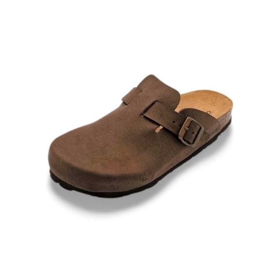 Damskie klapki w kolorze brązowym, wykonane z wysokiej jakości skóry ekologicznej. Model posiada tęgość H, odpowiednią dla szerszych stóp, oraz profilowaną wkładkę, dopasowującą się do kształtu stopy, co zapewnia maksymalny komfort. Lekka, elastyczna i antypoślizgowa podeszwa gwarantuje stabilność podczas chodzenia. Zakryty przód i solidne wykonanie sprawiają, że klapki idealnie nadają się do codziennego użytku. Włoska marka Grünland łączy wysoką jakość z wygodą i trwałością.