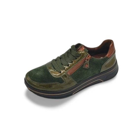 Półbuty damskie wykonane z miękkiej, naturalnej skóry cholewki, zapewniają wysoki komfort użytkowania i łatwo dopasowują się do kształtu stopy. Tęgość H — dla osób z szerszą stopą. Wnętrze wyposażono w wyjmowaną, wyprofilowaną wkładkę, która gwarantuje amortyzację, wsparcie łuku stopy oraz możliwość wymiany na wkładki indywidualne czy ortopedyczne. Praktyczne podwójne zapięcie — sznurowanie oraz boczny zamek — pozwala na wygodne zakładanie i idealne dopasowanie obuwia. Lekka i elastyczna podeszwa wspiera naturalny ruch stopy, a jej wysokość około 2,5 cm zapewnia stabilność oraz subtelne uniesienie.
