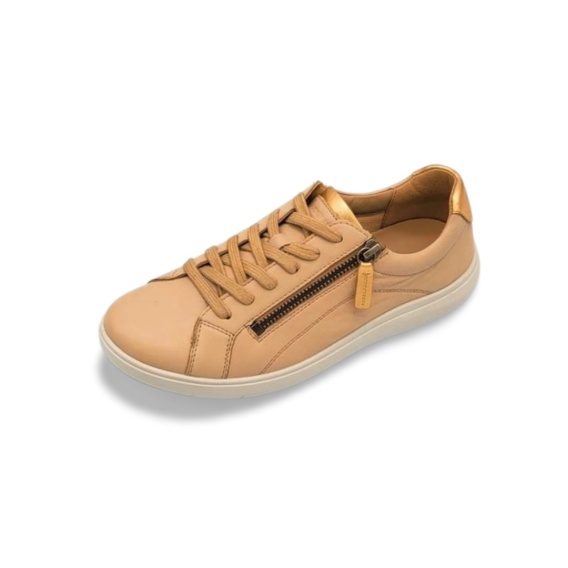 Półbuty damskie w kolorze jasny beż, wykonane z wysokiej jakości skóry naturalnej licowej. Model posiada podwójne zapięcie — sznurowanie oraz suwak, co ułatwia zakładanie i pozwala na idealne dopasowanie do stopy. Wyjmowana wkładka zwiększa wygodę i umożliwia zastosowanie wkładek ortopedycznych. Amortyzująca, lekka podeszwa zapewnia komfort i stabilność podczas chodzenia. Tęgość H sprawia, że półbuty są odpowiednie dla osób z szerszymi, wrażliwymi stopami.