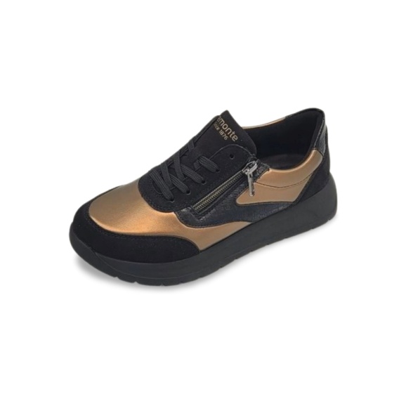 Półbuty damskie wykonane z bardzo miękkiej skóry ekologicznej, która doskonale dopasowuje się do stopy i zapewnia wyjątkowy komfort. Kolor schwarz kombi oznacza eleganczne połączenie czerni i szarości, dzięki czemu obuwie jest uniwersalne i pasuje do wielu stylizacji — zarówno klasycznych, jak i sportowo-casualowych. Model posiada tęgość G, czyli standardową, komfortową szerokość dla większości stóp. Półbuty wyposażono w sznurowanie, które pozwala na idealne dopasowanie, oraz boczny suwak, ułatwiający szybkie zakładanie i zdejmowanie. Wewnątrz znajduje się miękka, przyjazna dla skóry wyściółka, a dodatkowym atutem jest wyjmowana tekstylna wkładka, umożliwiająca jej łatwe czyszczenie, wymianę lub zastosowanie wkładki ortopedycznej. Lekka, elastyczna i antypoślizgowa podeszwa zapewnia stabilność oraz wygodę na co dzień.