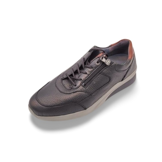 Półbuty męskie, sportowe, wykonane z wysokiej jakości naturalnej skóry, gwarantują trwałość, swobodne dopasowanie. Model wyposażono w praktyczne połączenie sznurowania i bocznego suwaka, które pozwala na idealne dopasowanie buta oraz szybkie zakładanie. Dzięki tęgości K, półbuty zapewniają więcej przestrzeni dla szerszych stóp lub stóp wymagających dodatkowego miejsca z powodu deformacji, obrzęków czy wrażliwości. Lekka, elastyczna podeszwa amortyzuje wstrząsy i poprawia komfort chodzenia, a wyjmowana wkładka umożliwia stosowanie wkładek ortopedycznych.
