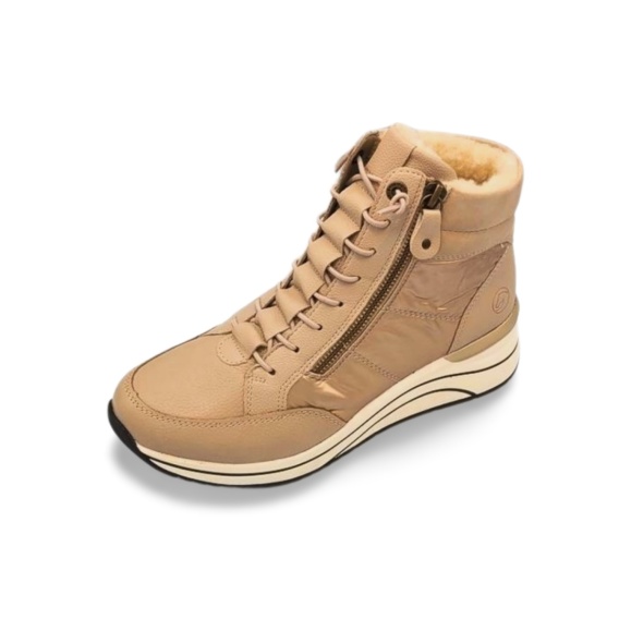 Stylowe i ciepłe śniegowce damskie w uniwersalnym beżowym kolorze to idealny wybór na zimę. Wykonane z połączenia skóry naturalnej, skóry ekologicznej i materiału tekstylnego, zapewniają trwałość, elegancki wygląd oraz ochronę przed wilgocią. Model jest ocieplany naturalną wełną, co gwarantuje komfort cieplny nawet w mroźne dni. Zapinane są na dwa suwaki oraz sznurówkę z gumki, którą w razie potrzeby można wymienić na tradycyjną sznurówkę, umożliwiając idealne dopasowanie do stopy i wygodne zakładanie. Tęgość G oznacza standardową szerokość stopy, a wyjmowana wkładka zwiększa komfort noszenia i pozwala na stosowanie własnych wkładek ortopedycznych. Śniegowce mają lekko podwyższoną, antypoślizgową podeszwę o wysokości ok. 3 cm, która zapewnia stabilność, amortyzację i pewność kroku na śliskich nawierzchniach.