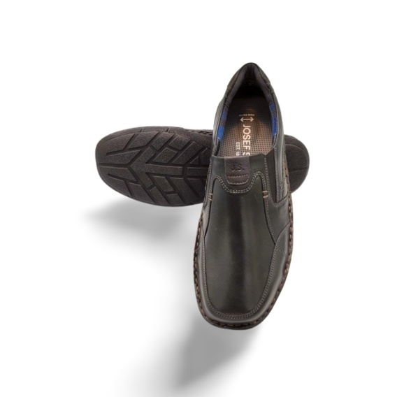 Półbuty męskie w kolorze czarnym, wykonane z wysokiej jakości skóry naturalnej licowej. Model wsuwany, wyposażony w gumki przy podbiciu, zapewnia wygodne zakładanie i idealne dopasowanie do stopy. Wyjmowana, profilowana wkładka zwiększa komfort i pozwala na zastosowanie wkładek ortopedycznych. Lekka, amortyzująca podeszwa amortyzuje kroki i zapewnia stabilność podczas chodzenia. Tęgość K sprawia, że półbuty są odpowiednie dla osób z wrażliwymi, szerokimi stopami, w tym cierpiącymi na haluksy i inne schorzenia stóp.